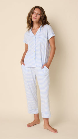 We searched the globe for the perfect knit fabric for our pajamas. We started with hand-pulled Peruvian Pima cotton, which is known for its silky luster and unbelievably soft hand. We combined this Pima cotton with Modal to get the perfect drape and added Lycra to give it stretch and recovery so they look and feel great with every wear. These PJs are so luxuriously soft you'll never want to change out of them.
