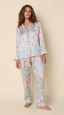 - Pajama top has cap sleeves with ruching detail at the shoulder